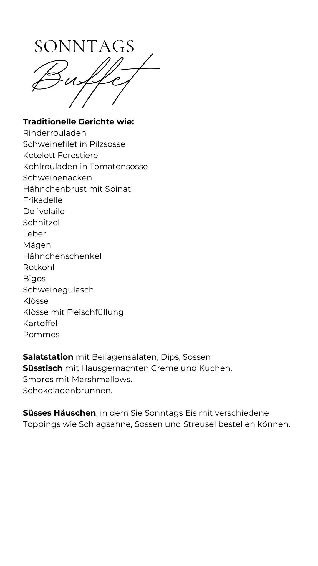 Sonntags : 12:00-18:00 Klassisches Buffet 12:00-18:00